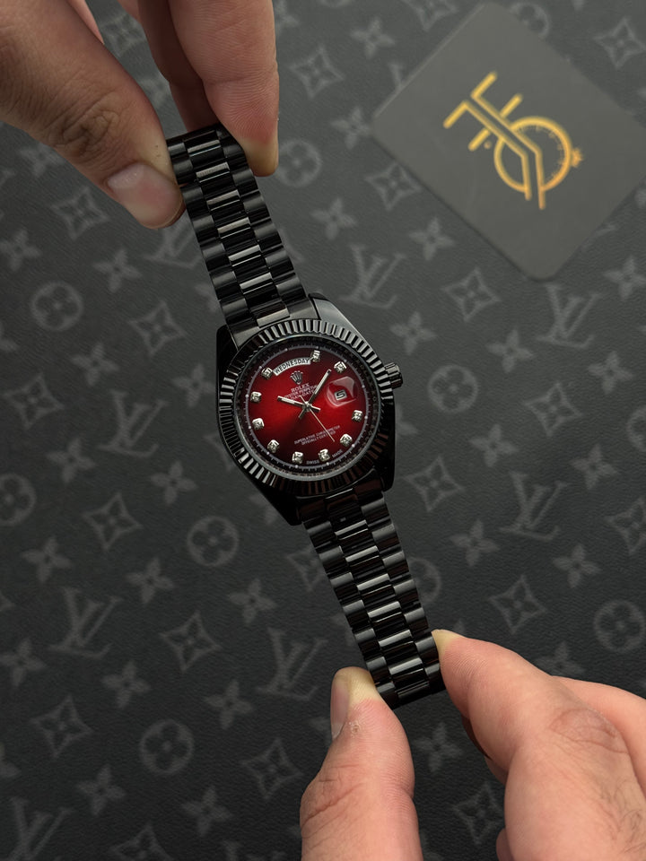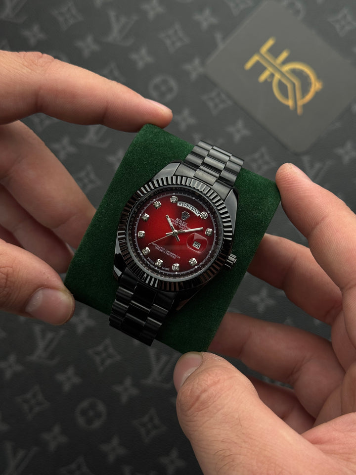 ️ ساعة روليكس أسود داي ديت قزاز أحمر حزام برسيدنت