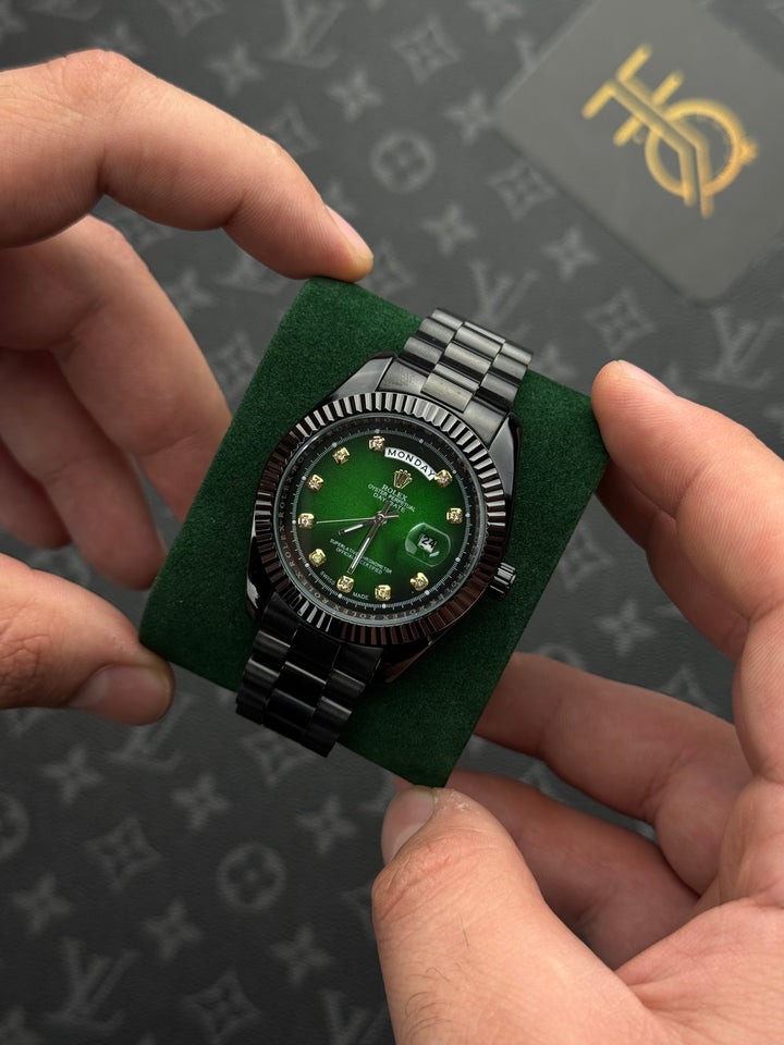 ️ ساعة روليكس أسود داي ديت قزاز أخضر حزام برسيدنت