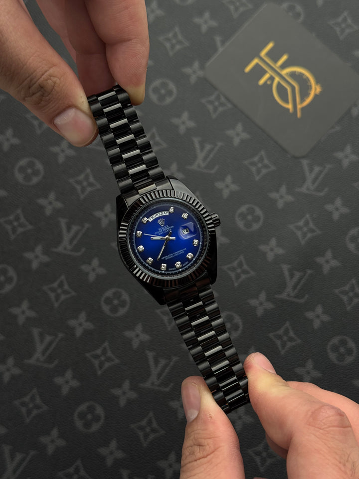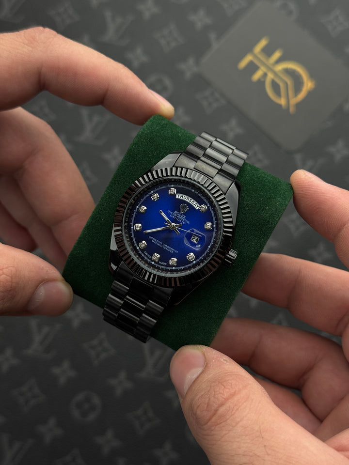 ️ ساعة روليكس أسود داي ديت قزاز أزرق حزام برسيدنت