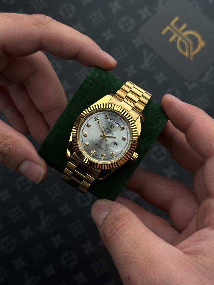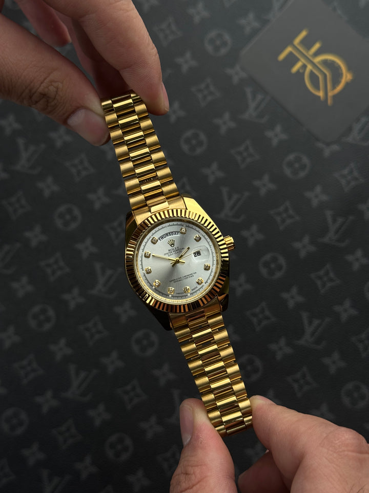 ️ ساعة روليكس ذهبي داي ديت قزاز أبيض حزام برسيدنت