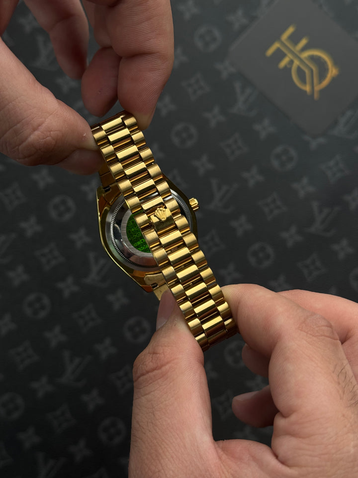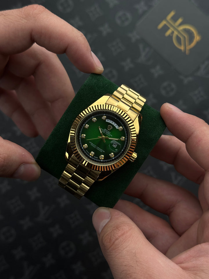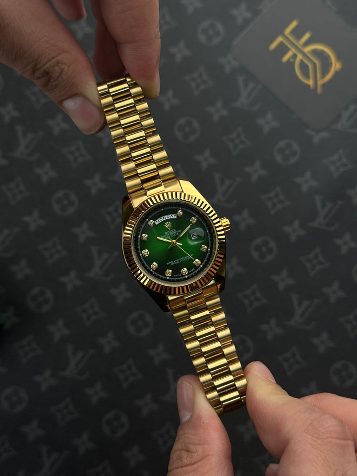 ️ ساعة روليكس ذهبي داي ديت قزاز أخضر حزام برسيدنت