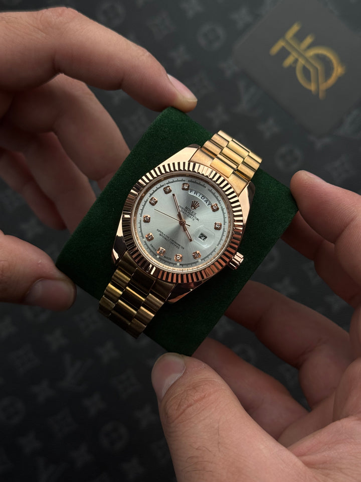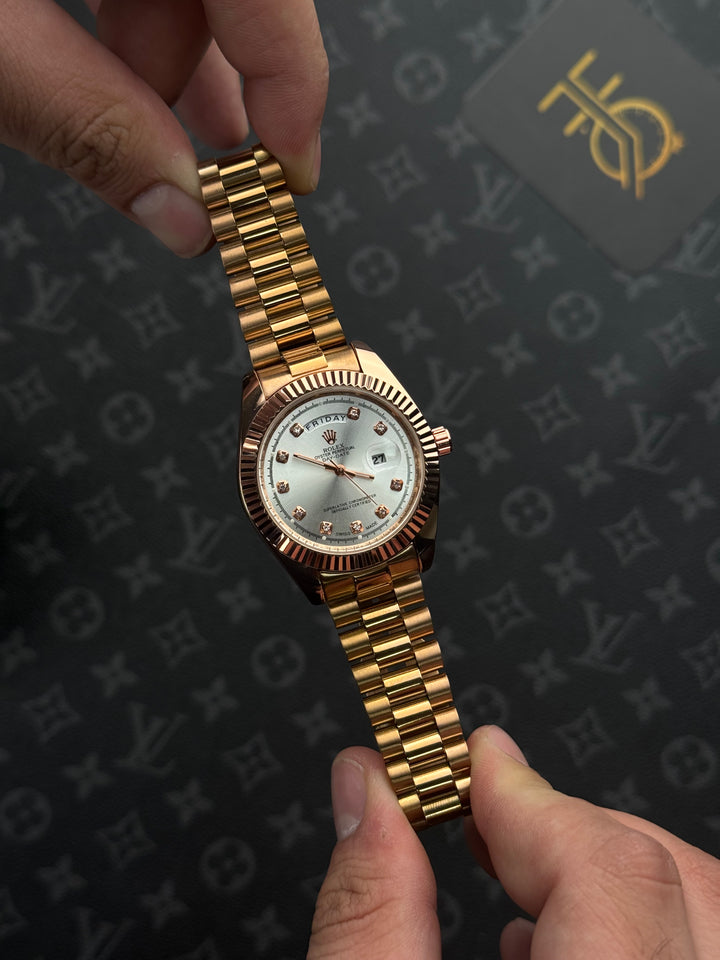️ ساعة روليكس روز جولد داي ديت قزاز أبيض حزام برسيدنت