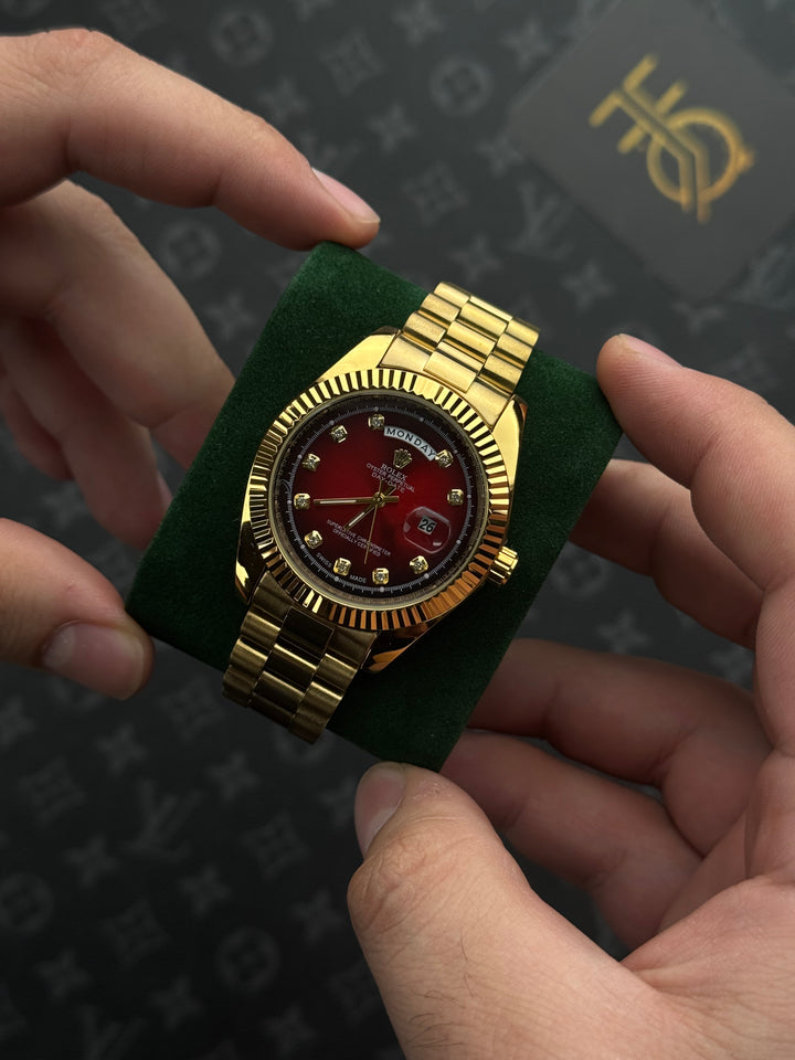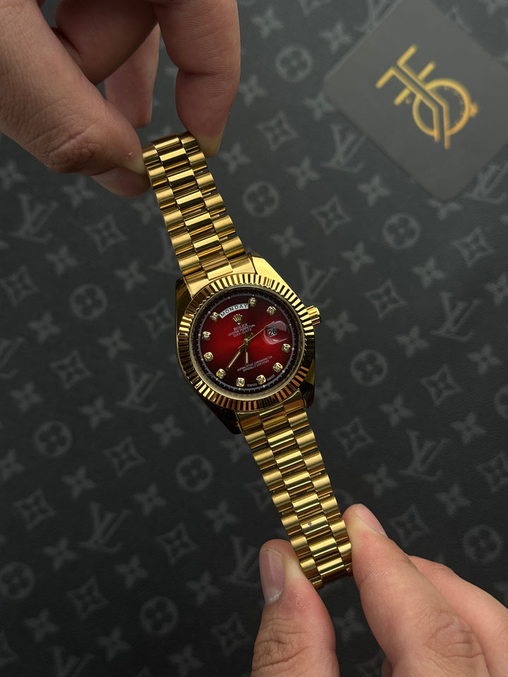 ️ ساعة روليكس ذهبي داي ديت قزاز أحمر حزام برسيدنت